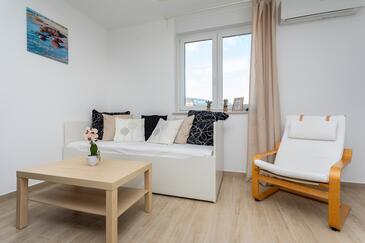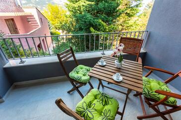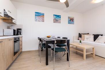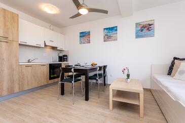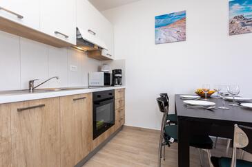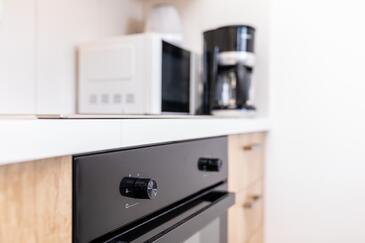 Ferienwohnung bietet Platz für 6 Gäste. Die Betten sind in Schlafzimmern, die es 2 gibt, und in Wohnzimmer, innerhalb einer Gesamtfläche von 39m2, angeordnet. Die Gäste haben eine eigene Terrasse zur Verfügung, auf der sie in warmen Sommernächten genießen können. Das Apartment bietet Meerblick. In der Unterkunftseinheit besteht die Möglichkeit des Mitbringens von Haustieren gegen Aufpreis.