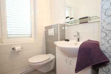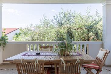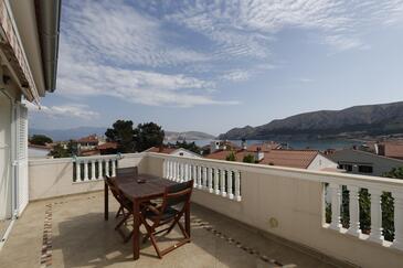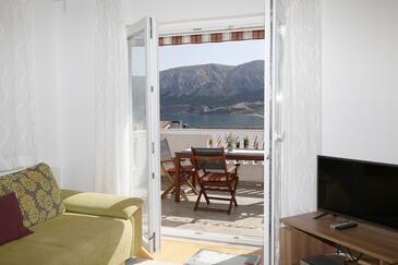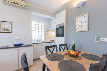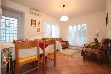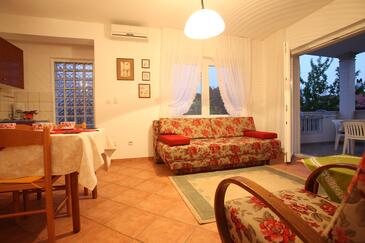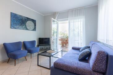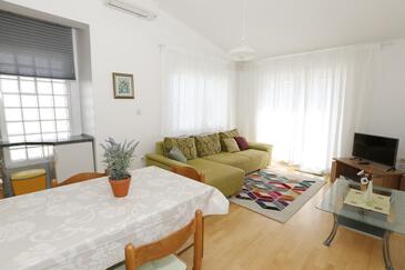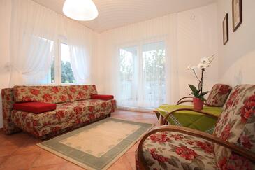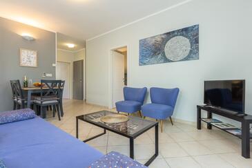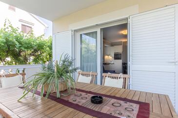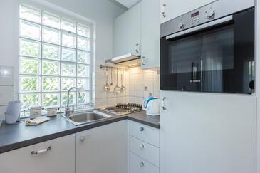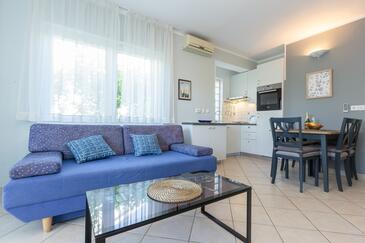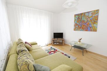 Ferienwohnung bietet Platz für 5 Gäste. Die Betten sind in Schlafzimmern, die es 2 gibt, und in Wohnzimmer, innerhalb einer Gesamtfläche von 42m2, angeordnet. Die Gäste haben eine eigene Terrasse zur Verfügung, auf der sie in warmen Sommernächten genießen können. Es ist erlaubt, Speisen auf dem Gemeinschafts-Grill vorzubereiten.