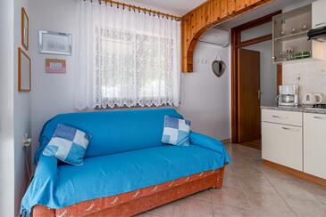 Ferienwohnung bietet Platz für 3 Gäste. Die Betten sind in Schlafzimmern, die es 1 gibt, und in Wohnzimmer, innerhalb einer Gesamtfläche von 30m2, angeordnet. Die Gäste haben eine eigene Terrasse zur Verfügung, auf der sie in warmen Sommernächten genießen können. Das Apartment bietet Meerblick.