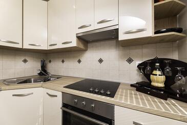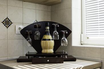 Ferienwohnung bietet Platz für 4 Gäste. Die Betten sind in Schlafzimmern, die es 2 gibt, innerhalb einer Gesamtfläche von 38m2, angeordnet. Die Gäste haben eine eigene Terrasse zur Verfügung, auf der sie in warmen Sommernächten genießen können. Es ist erlaubt, Speisen auf dem Gemeinschafts-Grill vorzubereiten.