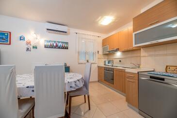 Ferienwohnung bietet Platz für 6 Gäste. Die Betten sind in Schlafzimmern, die es 2 gibt, und in Wohnzimmer, innerhalb einer Gesamtfläche von 71m2, angeordnet. Die Gäste haben eine eigene Terrasse zur Verfügung, auf der sie in warmen Sommernächten genießen können. Für vollen Genuss und Entspannung gibt es einen privaten Grill für Gäste dieser Unterkunft.