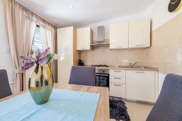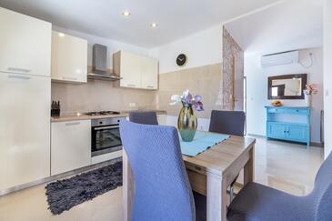 Ferienwohnung bietet Platz für 4 Gäste. Die Betten sind in Schlafzimmern, die es 2 gibt, innerhalb einer Gesamtfläche von 50m2, angeordnet. Die Gäste haben eine eigene Terrasse zur Verfügung, auf der sie in warmen Sommernächten genießen können.