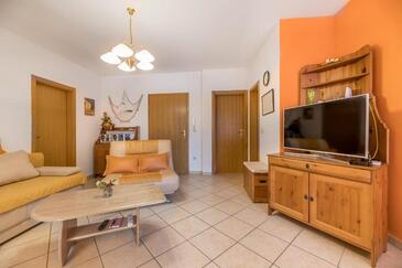 Ferienwohnung bietet Platz für 5 Gäste. Die Betten sind in Schlafzimmern, die es 2 gibt, und in Wohnzimmer, innerhalb einer Gesamtfläche von 56m2, angeordnet. Die Gäste haben eine eigene Terrasse zur Verfügung, auf der sie in warmen Sommernächten genießen können. Für vollen Genuss und Entspannung gibt es einen privaten Grill für Gäste dieser Unterkunft.