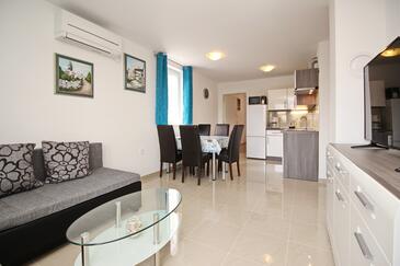 Ferienwohnung bietet Platz für 5 Gäste. Die Betten sind in Schlafzimmern, die es 2 gibt, und in Wohnzimmer, innerhalb einer Gesamtfläche von 50m2, angeordnet. Die Gäste haben einen eigenen Balkon zur Verfügung, auf der sie in warmen Sommernächten genießen können.