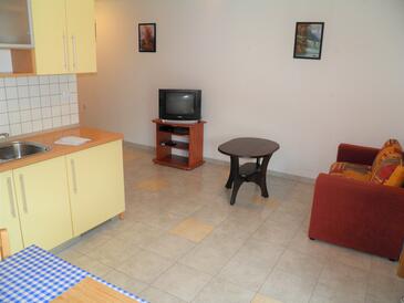 Ferienwohnung bietet Platz für 5 Gäste. Die Betten sind in Schlafzimmern, die es 2 gibt, und in Wohnzimmer, innerhalb einer Gesamtfläche von 50m2, angeordnet. Die Gäste haben einen eigenen Balkon zur Verfügung, auf der sie in warmen Sommernächten genießen können. In der Unterkunftseinheit besteht die Möglichkeit des Mitbringens von Haustieren gegen Aufpreis.