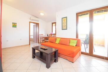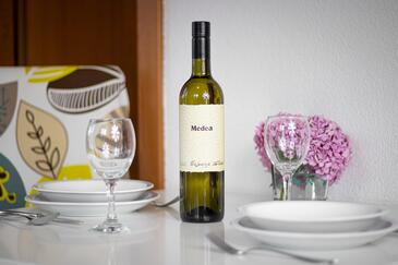 Ferienwohnung bietet Platz für 4 Gäste. Die Betten sind in Schlafzimmern, die es 1 gibt, und in Wohnzimmer, innerhalb einer Gesamtfläche von 30m2, angeordnet. Die Gäste haben einen eigenen Balkon zur Verfügung, auf der sie in warmen Sommernächten genießen können. Das Apartment bietet Meerblick. Es ist erlaubt, Speisen auf dem Gemeinschafts-Grill vorzubereiten.