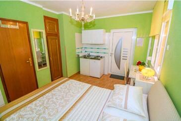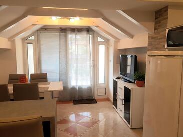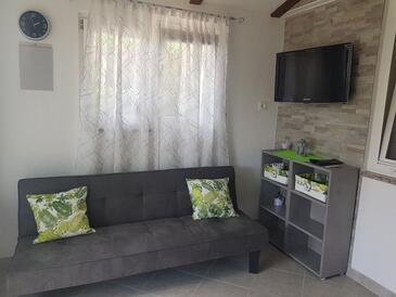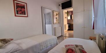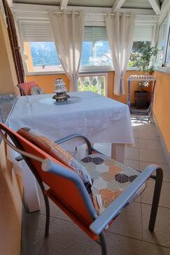 Ferienwohnung bietet Platz für 5 Gäste. Die Betten sind in Schlafzimmern, die es 2 gibt, innerhalb einer Gesamtfläche von 47m2, angeordnet. Die Gäste haben eine eigene Terrasse zur Verfügung, auf der sie in warmen Sommernächten genießen können. Es ist erlaubt, Speisen auf dem Gemeinschafts-Grill vorzubereiten.