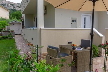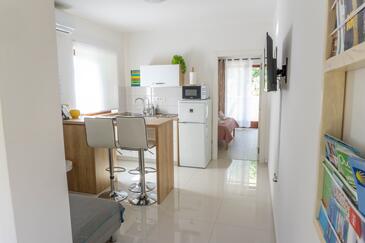 Ferienwohnung bietet Platz für 2 Gäste. Die Betten sind in Schlafzimmern, die es 1 gibt, innerhalb einer Gesamtfläche von 28m2, angeordnet. Die Gäste haben eine eigene Terrasse zur Verfügung, auf der sie in warmen Sommernächten genießen können. Es ist erlaubt, Speisen auf dem Gemeinschafts-Grill vorzubereiten. In der gebuchten Unterkunftseinheit zahlt man am Ort ein Depositum ( der Preis ist an der Internetseite angeführt ).