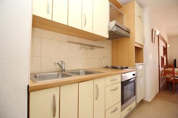 Ferienwohnung bietet Platz für 6 Gäste. Die Betten sind in Schlafzimmern, die es 3 gibt, innerhalb einer Gesamtfläche von 101m2, angeordnet. Die Gäste haben eine eigene Terrasse zur Verfügung, auf der sie in warmen Sommernächten genießen können.