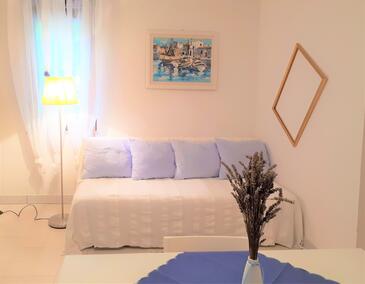 Ferienwohnung bietet Platz für 3 Gäste. Die Betten sind in Schlafzimmern, die es 1 gibt, innerhalb einer Gesamtfläche von 50m2, angeordnet. Die Gäste haben eine eigene Terrasse zur Verfügung, auf der sie in warmen Sommernächten genießen können. Es ist erlaubt, Speisen auf dem Gemeinschafts-Grill vorzubereiten.