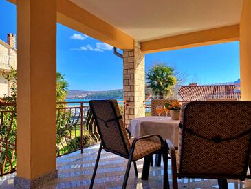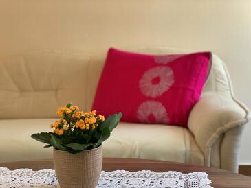 Ferienwohnung bietet Platz für 4 Gäste. Die Betten sind in Schlafzimmern, die es 1 gibt, und in Wohnzimmer, innerhalb einer Gesamtfläche von 38m2, angeordnet. Die Gäste haben eine eigene Terrasse zur Verfügung, auf der sie in warmen Sommernächten genießen können. Das Apartment bietet Meerblick. Es ist erlaubt, Speisen auf dem Gemeinschafts-Grill vorzubereiten.