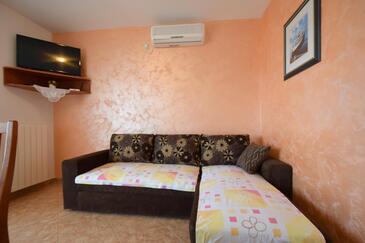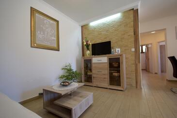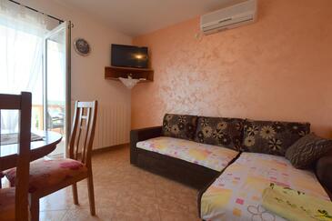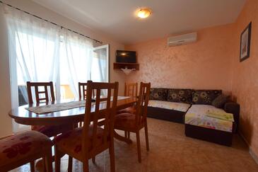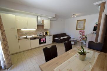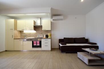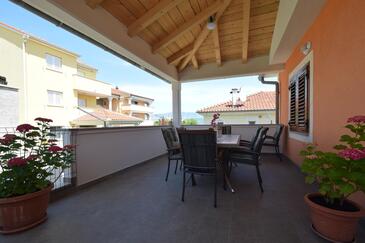 Ferienwohnung bietet Platz für 6 Gäste. Die Betten sind in Schlafzimmern, die es 3 gibt, innerhalb einer Gesamtfläche von 95m2, angeordnet. Die Gäste haben eine eigene Terrasse zur Verfügung, auf der sie in warmen Sommernächten genießen können. Das Apartment bietet Meerblick. Es ist erlaubt, Speisen auf dem Gemeinschafts-Grill vorzubereiten. In der Unterkunftseinheit besteht die Möglichkeit des Mitbringens von Haustieren gegen Aufpreis.