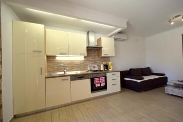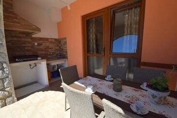 Ferienwohnung bietet Platz für 5 Gäste. Die Betten sind in Schlafzimmern, die es 2 gibt, und in Wohnzimmer, innerhalb einer Gesamtfläche von 60m2, angeordnet. Die Gäste haben eine eigene Terrasse zur Verfügung, auf der sie in warmen Sommernächten genießen können. Für vollen Genuss und Entspannung gibt es einen privaten Grill für Gäste dieser Unterkunft. In der Unterkunftseinheit besteht die Möglichkeit des Mitbringens von Haustieren gegen Aufpreis.