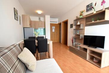 Ferienwohnung bietet Platz für 4 Gäste. Die Betten sind in Schlafzimmern, die es 2 gibt, innerhalb einer Gesamtfläche von 54m2, angeordnet. Die Gäste haben einen eigenen Balkon zur Verfügung, auf der sie in warmen Sommernächten genießen können. Das Apartment bietet Meerblick. Es ist erlaubt, Speisen auf dem Gemeinschafts-Grill vorzubereiten. In der Unterkunftseinheit besteht die Möglichkeit des Mitbringens von Haustieren gegen Aufpreis.