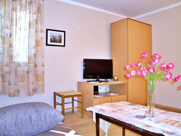 Ferienwohnung bietet Platz für 6 Gäste. Die Betten sind in Schlafzimmern, die es 2 gibt, und in Wohnzimmer, innerhalb einer Gesamtfläche von 56m2, angeordnet. Die Gäste haben eine eigene Terrasse zur Verfügung, auf der sie in warmen Sommernächten genießen können. Das Apartment bietet Meerblick. Es ist erlaubt, Speisen auf dem Gemeinschafts-Grill vorzubereiten.