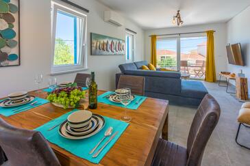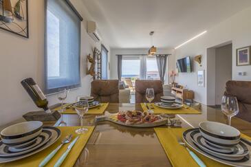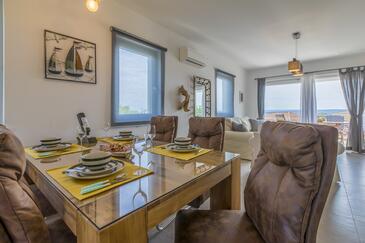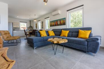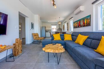Haus bietet Platz für 8 Gäste. Die Betten sind in Schlafzimmern, die es 4 gibt, innerhalb einer Gesamtfläche von 138m2, angeordnet. Die Gäste haben einen eigenen Balkon zur Verfügung, auf der sie in warmen Sommernächten genießen können. Das Haus bietet Meerblick. Für vollen Genuss und Entspannung gibt es einen privaten Grill für Gäste dieser Unterkunft. Während ihres Aufenthalts können sich Gäste im privaten Schwimmbad entspannen. In der Unterkunftseinheit besteht die Möglichkeit des Mitbringens von Haustieren gegen Aufpreis.