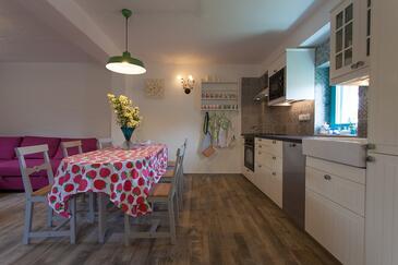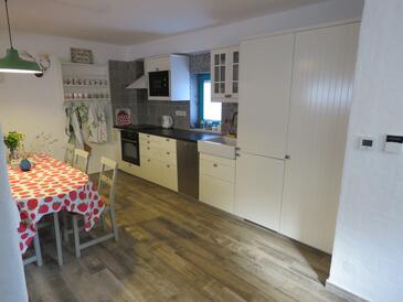 Haus bietet Platz für 6 Gäste. Die Betten sind in Schlafzimmern, die es 2 gibt, und in Wohnzimmer, innerhalb einer Gesamtfläche von 78m2, angeordnet. Die Gäste haben eine eigene Terrasse zur Verfügung, auf der sie in warmen Sommernächten genießen können. Es ist erlaubt, Speisen auf dem Gemeinschafts-Grill vorzubereiten.