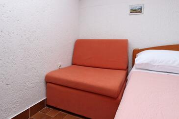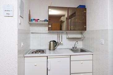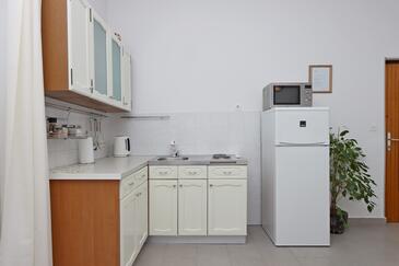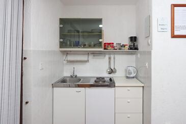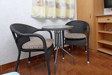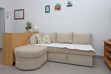 Ferienwohnung bietet Platz für 4 Gäste. Die Betten sind in Schlafzimmern, die es 1 gibt, und in Wohnzimmer, innerhalb einer Gesamtfläche von 34m2, angeordnet. Die Gäste haben eine eigene Terrasse zur Verfügung, auf der sie in warmen Sommernächten genießen können. Es ist erlaubt, Speisen auf dem Gemeinschafts-Grill vorzubereiten. In der Unterkunftseinheit besteht die Möglichkeit des Mitbringens von Haustieren gegen Aufpreis.