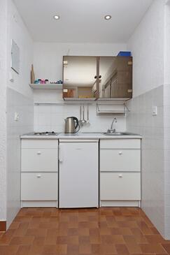 Studio bietet Platz für 2 Gäste. Die Betten sind in Schlafzimmern, die es 1 gibt, innerhalb einer Gesamtfläche von 18m2, angeordnet. Die Gäste haben eine eigene Terrasse zur Verfügung, auf der sie in warmen Sommernächten genießen können. Das Studio-Apartment bietet Meerblick. Es ist erlaubt, Speisen auf dem Gemeinschafts-Grill vorzubereiten. Durch die Terrasse der gebuchten Unterkunftseinheit gehen auch andere Gäste oder Vermieter.