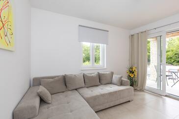 Ferienwohnung bietet Platz für 6 Gäste. Die Betten sind in Schlafzimmern, die es 2 gibt, und in Wohnzimmer, innerhalb einer Gesamtfläche von 49m2, angeordnet. Die Gäste haben eine eigene Terrasse zur Verfügung, auf der sie in warmen Sommernächten genießen können. Während ihres Aufenthalts können Gäste das gemeinsam zur Nutzung stehende Schwimmbad benutzen. In der Unterkunftseinheit besteht die Möglichkeit des Mitbringens von Haustieren gegen Aufpreis.