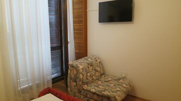 Ferienwohnung bietet Platz für 4 Gäste. Die Betten sind in Schlafzimmern, die es 2 gibt, innerhalb einer Gesamtfläche von 38m2, angeordnet. Die Gäste haben eine eigene Terrasse zur Verfügung, auf der sie in warmen Sommernächten genießen können. Es ist erlaubt, Speisen auf dem Gemeinschafts-Grill vorzubereiten.