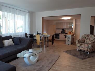 Ferienwohnung bietet Platz für 6 Gäste. Die Betten sind in Schlafzimmern, die es 3 gibt, und in Wohnzimmer, innerhalb einer Gesamtfläche von 94m2, angeordnet. Die Gäste haben eine eigene Terrasse zur Verfügung, auf der sie in warmen Sommernächten genießen können. Für vollen Genuss und Entspannung gibt es einen privaten Grill für Gäste dieser Unterkunft. Während ihres Aufenthalts können sich Gäste im privaten Schwimmbad entspannen.