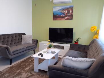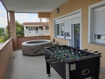 Ferienwohnung bietet Platz für 5 Gäste. Die Betten sind in Schlafzimmern, die es 3 gibt, innerhalb einer Gesamtfläche von 71m2, angeordnet. Die Gäste haben eine eigene Terrasse zur Verfügung, auf der sie in warmen Sommernächten genießen können.
