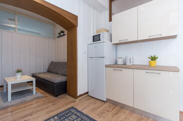 Studio bietet Platz für 2 Gäste. Die Betten sind in Schlafzimmern, die es 1 gibt, innerhalb einer Gesamtfläche von 20m2, angeordnet. Die Gäste haben einen eigenen Balkon zur Verfügung, auf der sie in warmen Sommernächten genießen können. Das Studio-Apartment bietet Meerblick. Es ist erlaubt, Speisen auf dem Gemeinschafts-Grill vorzubereiten. Während ihres Aufenthalts können Gäste das gemeinsam zur Nutzung stehende Schwimmbad benutzen. In der Unterkunftseinheit besteht die Möglichkeit des Mitbringens von Haustieren gegen Aufpreis.
