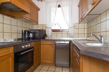 Ferienwohnung bietet Platz für 6 Gäste. Die Betten sind in Schlafzimmern, die es 3 gibt, innerhalb einer Gesamtfläche von 73m2, angeordnet. Die Gäste haben eine eigene Terrasse zur Verfügung, auf der sie in warmen Sommernächten genießen können. Es ist erlaubt, Speisen auf dem Gemeinschafts-Grill vorzubereiten.