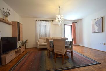 Ferienwohnung bietet Platz für 5 Gäste. Die Betten sind in Schlafzimmern, die es 2 gibt, und in Wohnzimmer, innerhalb einer Gesamtfläche von 60m2, angeordnet. Die Gäste haben eine eigene Terrasse zur Verfügung, auf der sie in warmen Sommernächten genießen können.