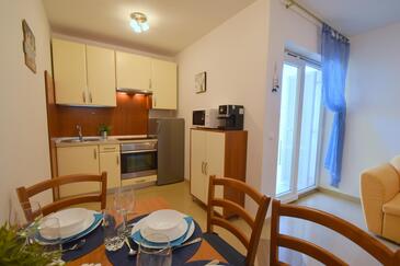 Ferienwohnung bietet Platz für 4 Gäste. Die Betten sind in Schlafzimmern, die es 2 gibt, innerhalb einer Gesamtfläche von 43m2, angeordnet. Die Gäste haben einen eigenen Balkon zur Verfügung, auf der sie in warmen Sommernächten genießen können.