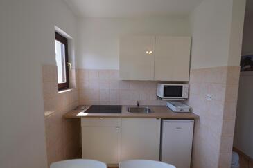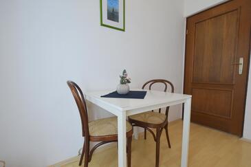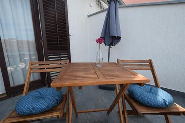Ferienwohnung bietet Platz für 5 Gäste. Die Betten sind in Schlafzimmern, die es 2 gibt, und in Esszimmer, innerhalb einer Gesamtfläche von 40m2, angeordnet. Die Gäste haben eine eigene Terrasse zur Verfügung, auf der sie in warmen Sommernächten genießen können.