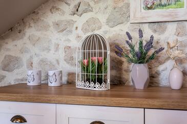 Haus bietet Platz für 7 Gäste. Die Betten sind in Schlafzimmern, die es 3 gibt, und in Wohnzimmer, innerhalb einer Gesamtfläche von 95m2, angeordnet. Die Gäste haben eine eigene Terrasse zur Verfügung, auf der sie in warmen Sommernächten genießen können. Während ihres Aufenthalts können sich Gäste im privaten Schwimmbad entspannen. In der gebuchten Unterkunftseinheit zahlt man am Ort ein Depositum ( der Preis ist an der Internetseite angeführt ).