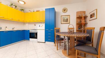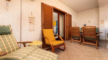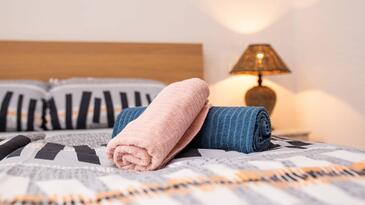 Ferienwohnung bietet Platz für 4 Gäste. Die Betten sind in Schlafzimmern, die es 2 gibt, innerhalb einer Gesamtfläche von 52m2, angeordnet. Die Gäste haben eine eigene Terrasse zur Verfügung, auf der sie in warmen Sommernächten genießen können.