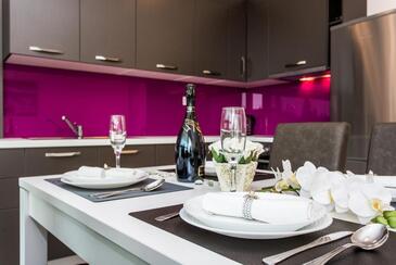 Ferienwohnung bietet Platz für 4 Gäste. Die Betten sind in Schlafzimmern, die es 2 gibt, innerhalb einer Gesamtfläche von 76m2, angeordnet. Die Gäste haben eine eigene Terrasse zur Verfügung, auf der sie in warmen Sommernächten genießen können. Das Apartment bietet Meerblick. Räume der gebuchten Unterkunftseinheit werden nicht in eine Ganze verbunden.