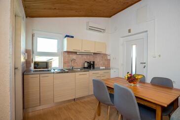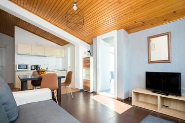 Ferienwohnung bietet Platz für 5 Gäste. Die Betten sind in Schlafzimmern, die es 2 gibt, und in Wohnzimmer, innerhalb einer Gesamtfläche von 47m2, angeordnet. Die Gäste haben eine eigene Terrasse zur Verfügung, auf der sie in warmen Sommernächten genießen können. Das Apartment bietet Meerblick. Es ist erlaubt, Speisen auf dem Gemeinschafts-Grill vorzubereiten. In der Unterkunftseinheit besteht die Möglichkeit des Mitbringens von Haustieren gegen Aufpreis.