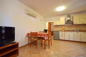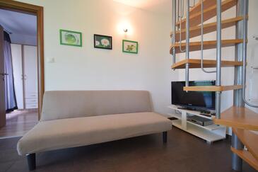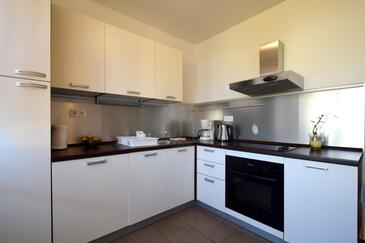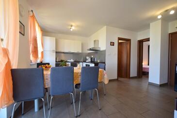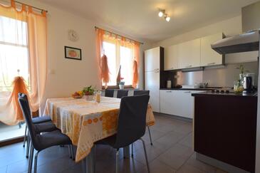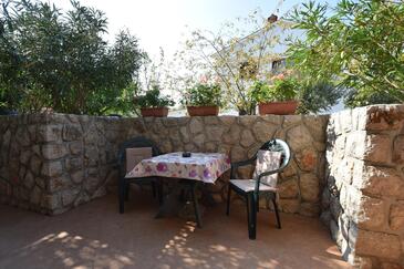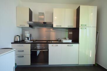 Ferienwohnung bietet Platz für 6 Gäste. Die Betten sind in Schlafzimmern, die es 3 gibt, innerhalb einer Gesamtfläche von 75m2, angeordnet. Die Gäste haben eine eigene Terrasse zur Verfügung, auf der sie in warmen Sommernächten genießen können. Das Apartment bietet Meerblick. Es ist erlaubt, Speisen auf dem Gemeinschafts-Grill vorzubereiten.