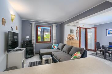 Ferienwohnung bietet Platz für 4 Gäste. Die Betten sind in Schlafzimmern, die es 2 gibt, innerhalb einer Gesamtfläche von 50m2, angeordnet. Die Gäste haben eine eigene Terrasse zur Verfügung, auf der sie in warmen Sommernächten genießen können. In der Unterkunftseinheit besteht die Möglichkeit des Mitbringens von Haustieren gegen Aufpreis.