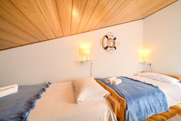 Ferienwohnung bietet Platz für 4 Gäste. Die Betten sind in Schlafzimmern, die es 2 gibt, innerhalb einer Gesamtfläche von 44m2, angeordnet. Die Gäste haben eine eigene Terrasse zur Verfügung, auf der sie in warmen Sommernächten genießen können. Das Apartment bietet Meerblick. Für vollen Genuss und Entspannung gibt es einen privaten Grill für Gäste dieser Unterkunft. In der gebuchten Unterkunftseinheit zahlt man am Ort ein Depositum ( der Preis ist an der Internetseite angeführt ).