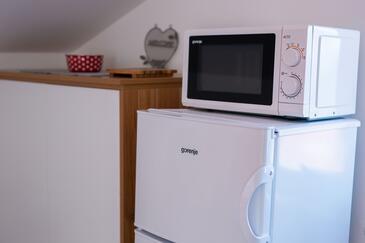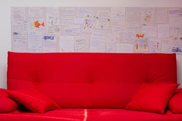 Ferienwohnung bietet Platz für 5 Gäste. Die Betten sind in Schlafzimmern, die es 2 gibt, und in Wohnzimmer, innerhalb einer Gesamtfläche von 58m2, angeordnet. Die Gäste haben eine eigene Terrasse zur Verfügung, auf der sie in warmen Sommernächten genießen können. Das Apartment bietet Meerblick. Es ist erlaubt, Speisen auf dem Gemeinschafts-Grill vorzubereiten. In der Unterkunftseinheit besteht die Möglichkeit des Mitbringens von Haustieren gegen Aufpreis.