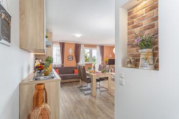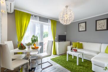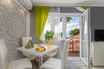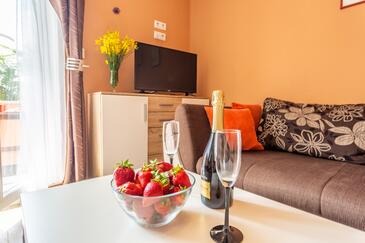 Ferienwohnung bietet Platz für 6 Gäste. Die Betten sind in Schlafzimmern, die es 1 gibt, und in Wohnzimmer, innerhalb einer Gesamtfläche von 45m2, angeordnet. Die Gäste haben einen eigenen Balkon zur Verfügung, auf der sie in warmen Sommernächten genießen können. Das Apartment bietet Meerblick. Für vollen Genuss und Entspannung gibt es einen privaten Grill für Gäste dieser Unterkunft. Während ihres Aufenthalts können Gäste das gemeinsam zur Nutzung stehende Schwimmbad benutzen.