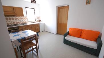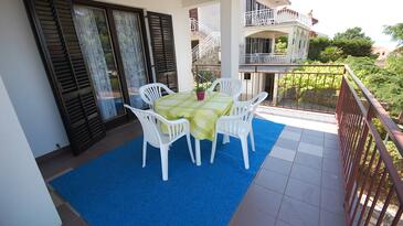 Ferienwohnung bietet Platz für 4 Gäste. Die Betten sind in Schlafzimmern, die es 2 gibt, innerhalb einer Gesamtfläche von 40m2, angeordnet. Die Gäste haben eine eigene Terrasse zur Verfügung, auf der sie in warmen Sommernächten genießen können. Das Apartment bietet Meerblick. Es ist erlaubt, Speisen auf dem Gemeinschafts-Grill vorzubereiten.