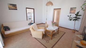 Ferienwohnung bietet Platz für 6 Gäste. Die Betten sind in Schlafzimmern, die es 3 gibt, innerhalb einer Gesamtfläche von 90m2, angeordnet. Die Gäste haben eine eigene Terrasse zur Verfügung, auf der sie in warmen Sommernächten genießen können. Das Apartment bietet Meerblick. Es ist erlaubt, Speisen auf dem Gemeinschafts-Grill vorzubereiten.