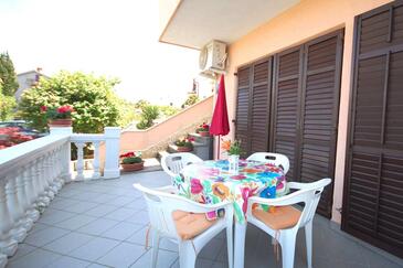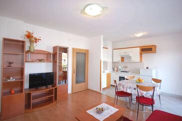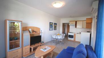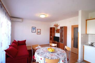 Ferienwohnung bietet Platz für 4 Gäste. Die Betten sind in Schlafzimmern, die es 2 gibt, und in Wohnzimmer, innerhalb einer Gesamtfläche von 51m2, angeordnet. Die Gäste haben eine eigene Terrasse zur Verfügung, auf der sie in warmen Sommernächten genießen können. In der Unterkunftseinheit besteht die Möglichkeit des Mitbringens von Haustieren gegen Aufpreis.