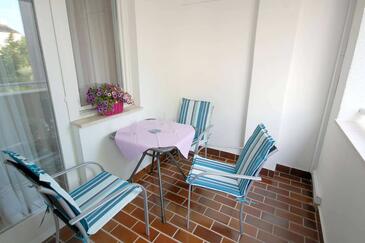 Ferienwohnung bietet Platz für 4 Gäste. Die Betten sind in Schlafzimmern, die es 1 gibt, und in Wohnzimmer, innerhalb einer Gesamtfläche von 50m2, angeordnet. Die Gäste haben eine eigene Terrasse zur Verfügung, auf der sie in warmen Sommernächten genießen können.
