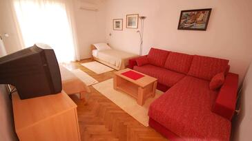 Ferienwohnung bietet Platz für 4 Gäste. Die Betten sind in Schlafzimmern, die es 1 gibt, und in Wohnzimmer, innerhalb einer Gesamtfläche von 41m2, angeordnet. Die Gäste haben eine eigene Terrasse zur Verfügung, auf der sie in warmen Sommernächten genießen können. Es ist erlaubt, Speisen auf dem Gemeinschafts-Grill vorzubereiten. In der Unterkunftseinheit besteht die Möglichkeit des Mitbringens von Haustieren gegen Aufpreis.