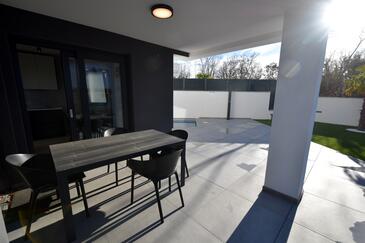 Ferienwohnung bietet Platz für 4 Gäste. Die Betten sind in Schlafzimmern, die es 2 gibt, innerhalb einer Gesamtfläche von 54m2, angeordnet. Die Gäste haben eine eigene Terrasse zur Verfügung, auf der sie in warmen Sommernächten genießen können. Während ihres Aufenthalts können sich Gäste im privaten Schwimmbad entspannen.