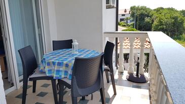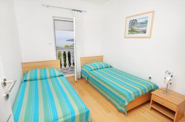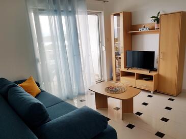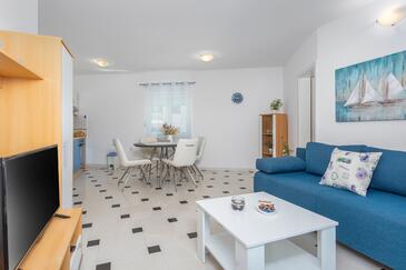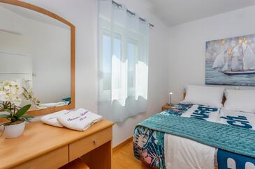 Ferienwohnung bietet Platz für 4 Gäste. Die Betten sind in Schlafzimmern, die es 2 gibt, innerhalb einer Gesamtfläche von 45m2, angeordnet. Die Gäste haben eine eigene Terrasse zur Verfügung, auf der sie in warmen Sommernächten genießen können. Das Apartment bietet Meerblick. Es ist erlaubt, Speisen auf dem Gemeinschafts-Grill vorzubereiten.
