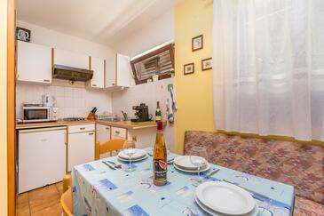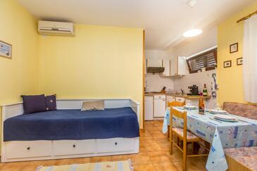 Studio bietet Platz für 4 Gäste. Die Betten sind in Schlafzimmern, die es 1 gibt, und in Wohnzimmer, innerhalb einer Gesamtfläche von 28m2, angeordnet. Die Gäste haben eine eigene Terrasse zur Verfügung, auf der sie in warmen Sommernächten genießen können. Das Studio-Apartment bietet Meerblick. Es ist erlaubt, Speisen auf dem Gemeinschafts-Grill vorzubereiten. In der Unterkunftseinheit besteht die Möglichkeit des Mitbringens von Haustieren gegen Aufpreis.