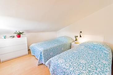 Ferienwohnung bietet Platz für 5 Gäste. Die Betten sind in Schlafzimmern, die es 2 gibt, und in Esszimmer, innerhalb einer Gesamtfläche von 59m2, angeordnet. Die Gäste haben eine eigene Terrasse zur Verfügung, auf der sie in warmen Sommernächten genießen können. Das Apartment bietet Meerblick. Es ist erlaubt, Speisen auf dem Gemeinschafts-Grill vorzubereiten.